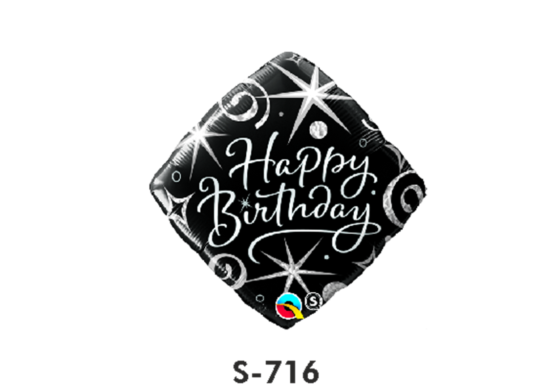 Folienballon Geburtstag / Happy Birthday Schwarz quadratisch Ø 38 cm