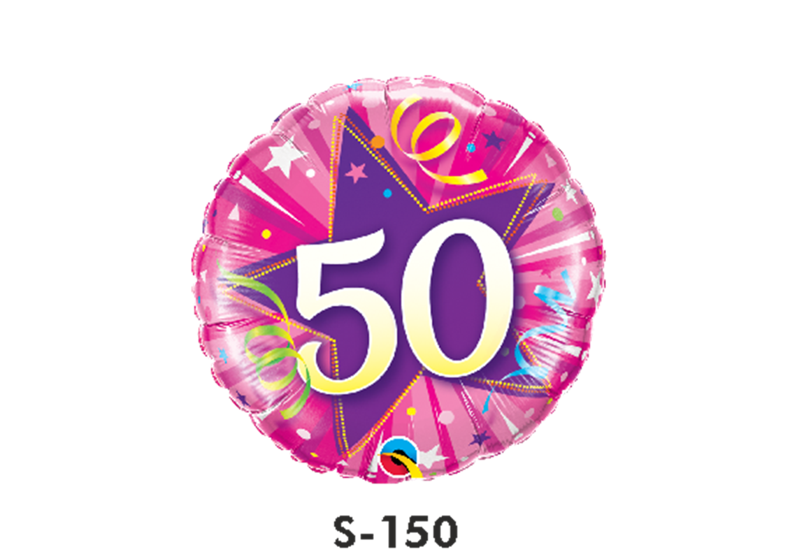 Folienballon Geburtstag / Happy Birthday Zahl - 50 - Luftschlangen Pink & Lila Ø 38 cm