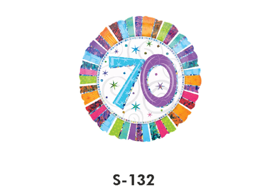 Folienballon Geburtstag / Happy Birthday Zahl - 70 - Bunt Ø 38 cm