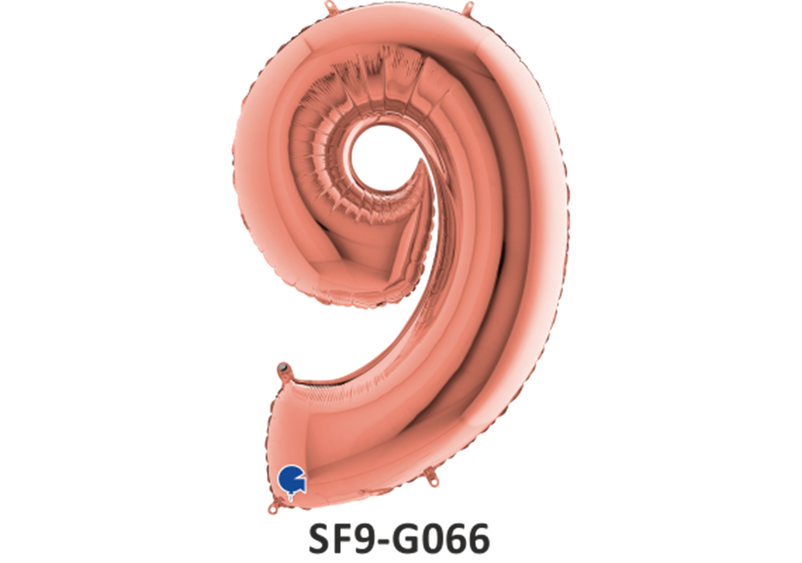 Zahlenfolienballon - Zahl 9 (neun) - in ROSAGOLD 80 cm
