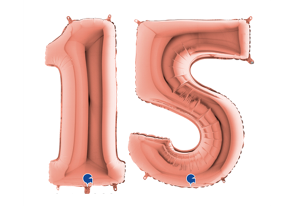 Zahlenfolienballons 15 (FÜNFZEHN) in ROSAGOLD 80cm